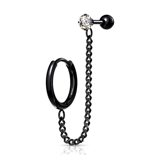 1 Knorpel Ohrstecker Klick-Creole Kette 4cm Zirkonia Clear 3mm Cartilage Labret Piercings Tragus viele Farben Edelstahl Schraubverschluss