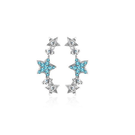 1 Paar Ohrklemmen funkelnde STERNE 21 x 3mm Set Damen Ohrringe Ohrclip Ohrstecker Chirurgenstahl Silber Clear Aqua