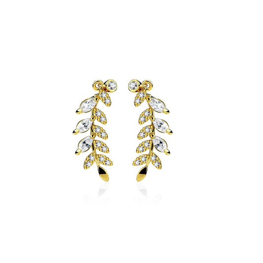 1 Paar Ohrklemmen BLÄTTER 21 x 3mm Set Ohrringe Ohrclip Ohrstecker Chirurgenstahl Zirkonia Silber Gold Roségold