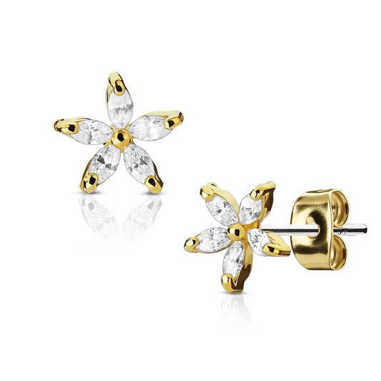 1 Paar Ohringe Ohrringe Set Stecker Edelstahl Chirurgenstahl Marquise Bluetenblatt clear Zirkonia gold silber roségold