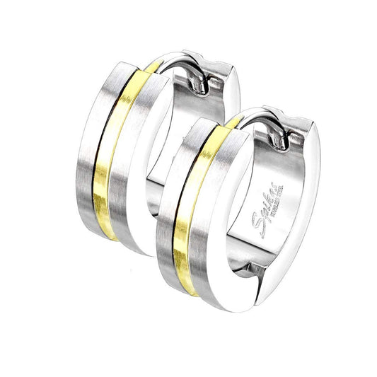 1 Paar Damen sandgebürstete CREOLE Mitte farbiger Streifen Ohrringe Ohrstecker Chirurgenstahl Silber Bunt 4,3mm
