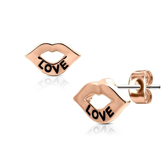 1 Paar Ohrringe Set Stecker Edelstahl Chirurgenstahl Lippen Love Liebe silber roségold gold