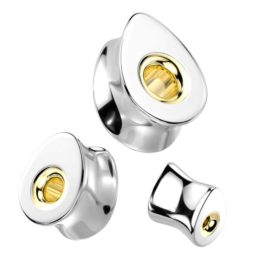 Ohrplug Tränen-Tropfen Silber Hohles Zentrum Gold Chirurgenstahl Ohrpiercing Ohrschmuck Tunnel Sattelverschluss 8-16mm