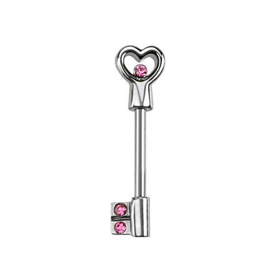 SCHLÜSSEL Herz Brustwarzenpiercing Intimpiercing Brustpiercing Edelstahl 1,6mm 11mm Silber ZIRKONIA Clear Aqua PINK TANSANIT
