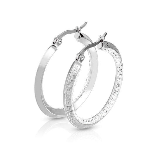 1 Paar Damen Ohrringe CREOLE Zirkonia-Rand innen Muster Ohrstecker Chirurgenstahl Gold Roségold Silber Clear 30mm