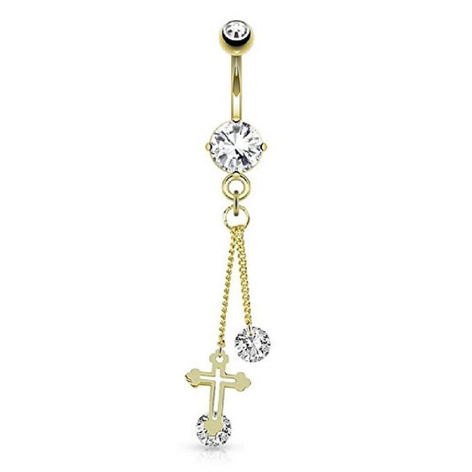 Bauchnabelpiercing GOLDENES Kreuz 14 Karat vergoldet Anhänger 1,6mm 10mm Nabelpiercing Chirurgenstahl Bananabell ZirkoniaNormaler Preis Von €11,95Normaler PreisGrundpreis pro-