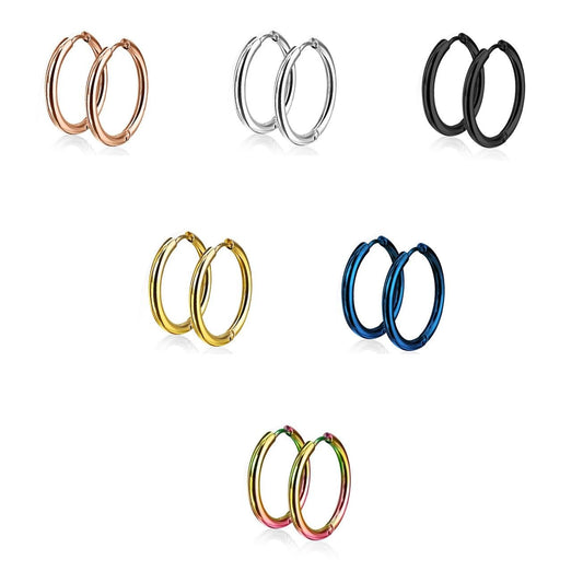 Damen 1 Paar Creolen Ohrringe Set Chirurgenstahl Klickverschluss Seamless Line blau schwarz silber regenbogen gold 10mm -20mm Länge