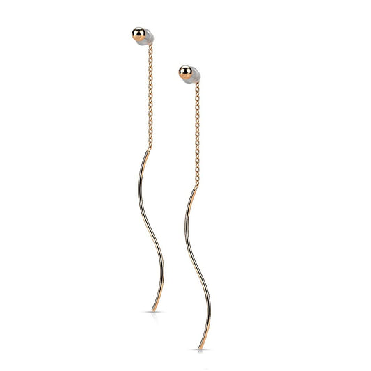 1 Paar Damen Ohrringe Durchzieher Kugel Wellen-Anhänger Ohrringe Ohrstecker Chirurgenstahl Silber Gold Roségold