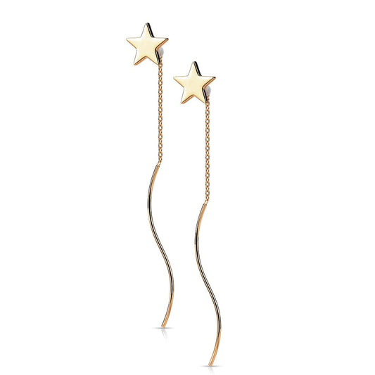 1 Paar Damen Ohrringe Durchzieher Stern Wellen-Anhänger Ohrringe Ohrstecker Chirurgenstahl Silber Gold Roségold