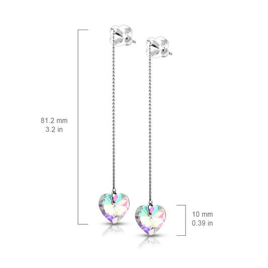1 Paar Damen Durchzieher Ohrringe facettierte Regenbogen-Herzen Ohr-hänger e Ohrstecker Silber
