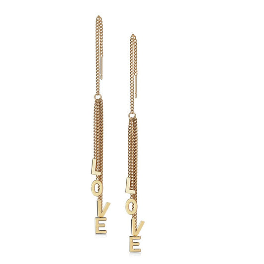 1 Paar Damen Ohrringe Durchzieher Ketten-Anhänger Wort LOVE Ohrringe Ohrstecker Chirurgenstahl Gold Roségold Silber