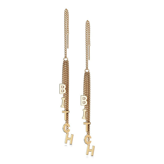 1 Paar Damen Ohrringe Durchzieher Ketten-Anhänger Wort BITCH Ohrringe Ohrstecker Chirurgenstahl Gold Roségold Silber
