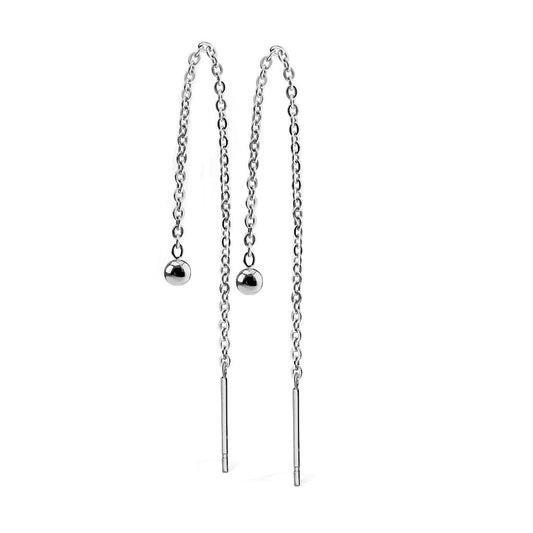 Damen 1 Paar Ohrhänger 1 Kugel 3mm lange hängende Kette 1 Stab Durchzieher Ohrringe Set Ohrstecker Chirurgenstahl Silber Gold