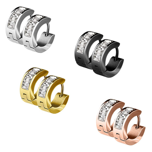 1 Paar Damen CREOLE 8 Zirkonia Clear Ohrringe Ohrstecker Chirurgenstahl Gold Schwarz Roségold Silber 7mm