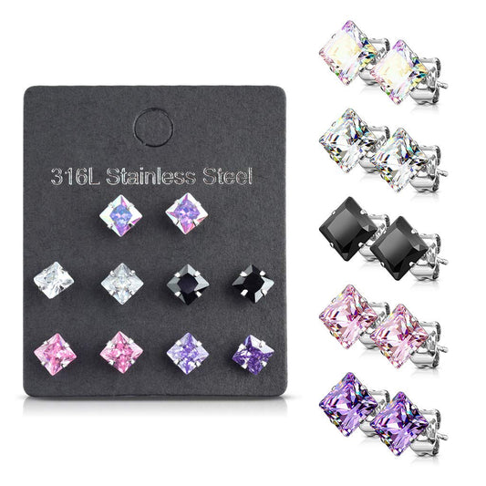 5 Paar Ohringe Eckiger Zirkonia 3mm 4mm 5mm 6mm 7mm Ohrringe Ohrstecker Chirurgenstahl Silber Gold Schwarz