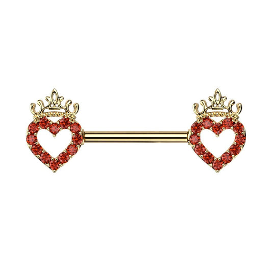 Brustwarzenpiercing Zirkonia Pavé Herzen Krone Silber Gold Roségold Brustpiercing Nippelpiercing Chirurgenstahl Stab 14mm