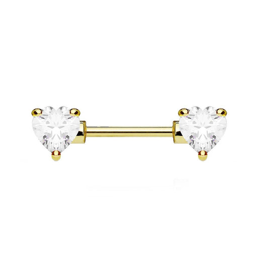 Brustwarzenpiercing ZIRKONIA Herzen Brustpiercing Intimpiercing CHIRURGENSTAHL Silber Gold Roségold Stab 1,6mm 12/16mm