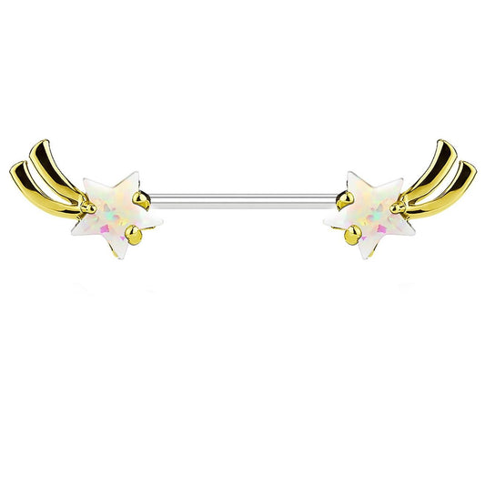 Brustwarzenpiercing Stern-SCHNUPPE Brustpiercing Intimpiercing Edelstahl Glitzer-Opal Silber Gold Roségold Stab 1,6mm 14mm