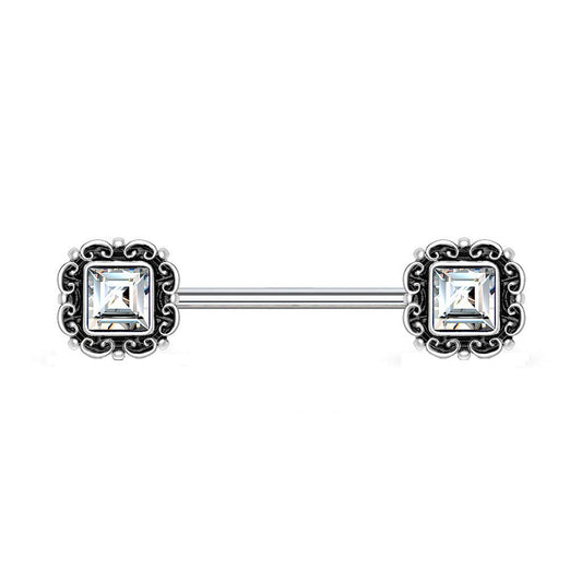 Brustwarzenpiercing Vintage Zirkonia-Quadrat Brustpiercing Nippelpiercing Chirurgenstahl viele Farben Stab 1,6/14mm