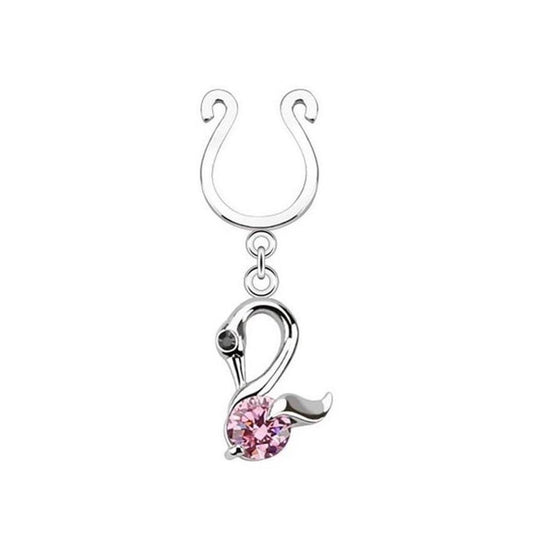 Brustwarzenpiercing Schwan KRISTALL Fake Intimpiercing Brustpiercing Nippelpiercing Edelstahl Silber ZIRKONIA Pink Clear