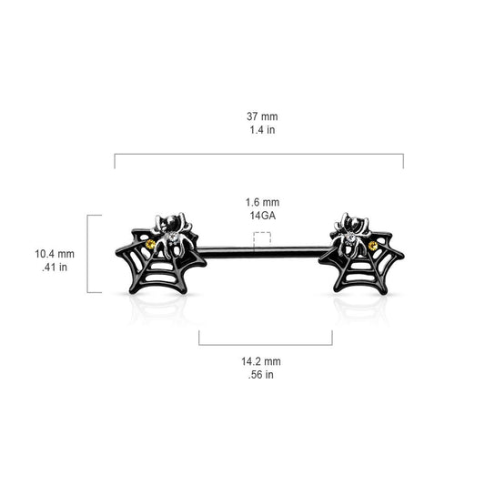 Brustwarzenpiercing Spinnen-Netze Schwarz Silber Clear Gelb Brustpiercing Nippelpiercing Intimpiercing Chirurgenstahl Stab 14mm