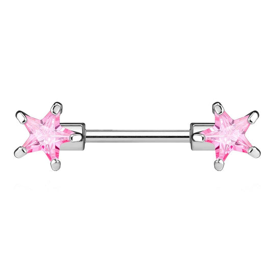 Brustwarzenpiercing ZIRKONIA Sterne Brustpiercing Intimpiercing CHIRURGENSTAHL Silber Clear Pink Aqua Stab 1,6mm 12mm