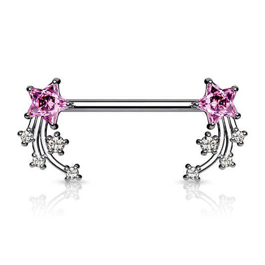 Brustwarzenpiercing Stern-schnuppen Silber Clear Pink Aqua Brustpiercing Nippelpiercing Intimpiercing Chirurgenstahl Stab 16mm