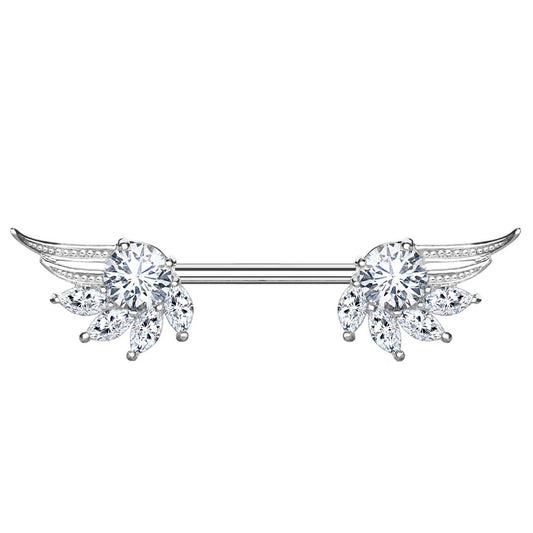 Brustwarzenpiercing ZIRKONIA Engels-FLÜGEL Brustpiercing Nippelpiercing Edelstahl Silber Roségold Gold Stab 1,6mm 14mm