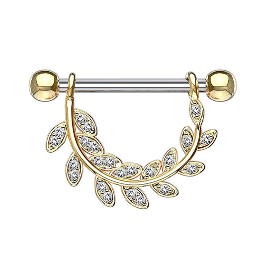Brustwarzenpiercing ZIRKONIA-BESETZTE BLÄTTER Brustpiercing Nippelpiercing Edelstahl Clear Gold Silber ROSÈGOLD 1,6mm 14mm
