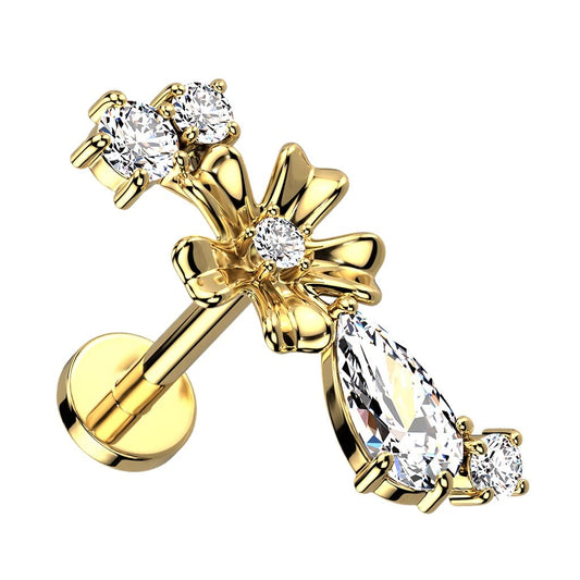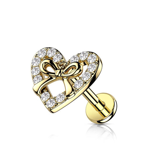Knorpel Ohrstecker Herz Schleife Silber Gold Roségold Pavé Zirkonia Clear Piercings Chirurgenstahl Schraubverschluss Stab 6/8mm lang