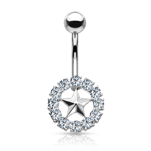 Bauchnabelpiercing Stern Kristall-Umrandung Nabelpiercing Chirurgenstahl Bananabell Silber Gold Roségold Stab 1,6/10mm