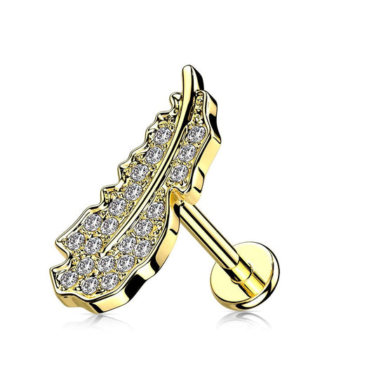 Knorpel Ohrstecker Feder Silber Gold Roségold Pavé Zirkonia Clear Piercings Chirurgenstahl Schraubverschluss Stab 6/8mm lang