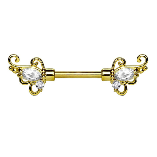 Brustwarzenpiercing FLORALES Design Brustpiercing Intimpiercing Edelstahl Silber Gold Roségold Clear Stab 1,6mm 12mm