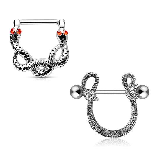 Funkelnde Schlange Brustwarzenpiercing Intimpiercing Brustpiercing Nippelpiercing Edelstahl Silber ZIRKONIA Rot 1,6mm 12mm