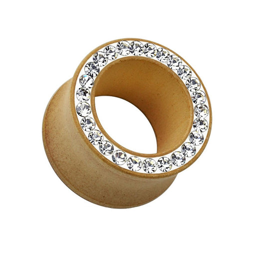 Ohrtunnel ORGANISCHES Holz KRISTALL-Rand Ohrpiercing Ohrschmuck Plug Sattelverschluss Hellbraun Dunkelbraun 8-16mm