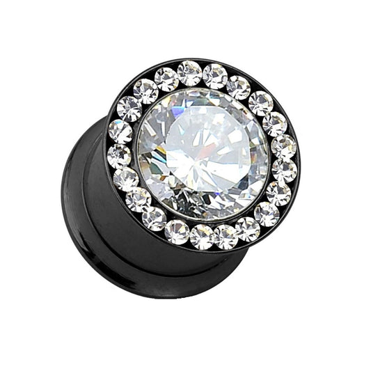 Ohrplug GROSSER ZIRKONIA Ohrpiercing Ohrschmuck Chirurgenstahl Tunnel Schraubverschluss Gold Schwarz Roségold Silber 6-12mm