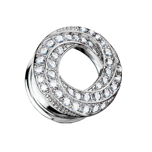 Ohrtunnel Glitzer-Wirbel ZIRKONIA Ohrpiercing Ohrschmuck Chirurgenstahl Plug Sattelverschluss Silber Gold Roségold Clear 6-16mm