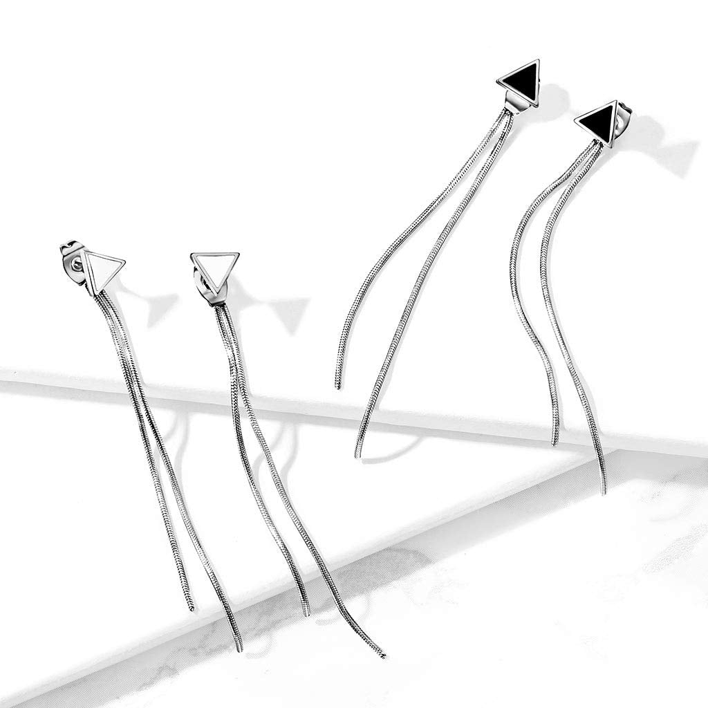 1 Paar Damen Ohrringe Enamel Dreieck 6mm Ketten Anhänger e Ohrstecker Chirurgenstahl Weiß Schwarz Silber Länge 65,7mm