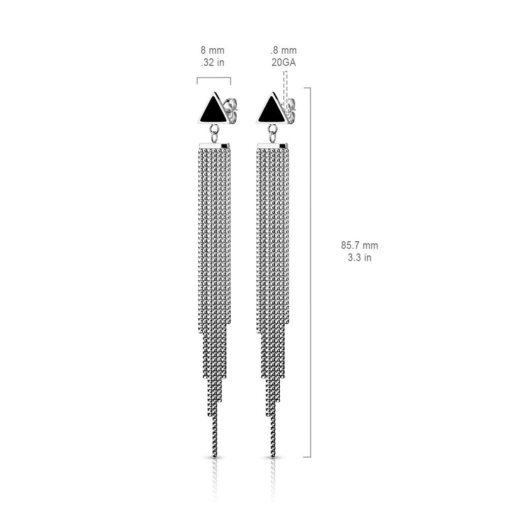 1 Paar Damen Ohrringe Enamel Dreieck Ketten Anhänger e Ohrstecker Chirurgenstahl Schwarz Gold Roségold Silber Länge 85,7mm