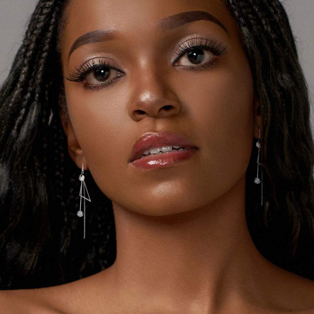 - Wir bringen abstrakte geometrische Formen an Ihre Ohren. Das Design bringt die unterschiedlichen Formen, wie Dreieck, Kreise und Rechtecke in eine gemeinsame Harmonie. Getoppt wird dies mit einer langen Kette und einem funkelnden Zirkonia für mehr Tiefe und Detail.