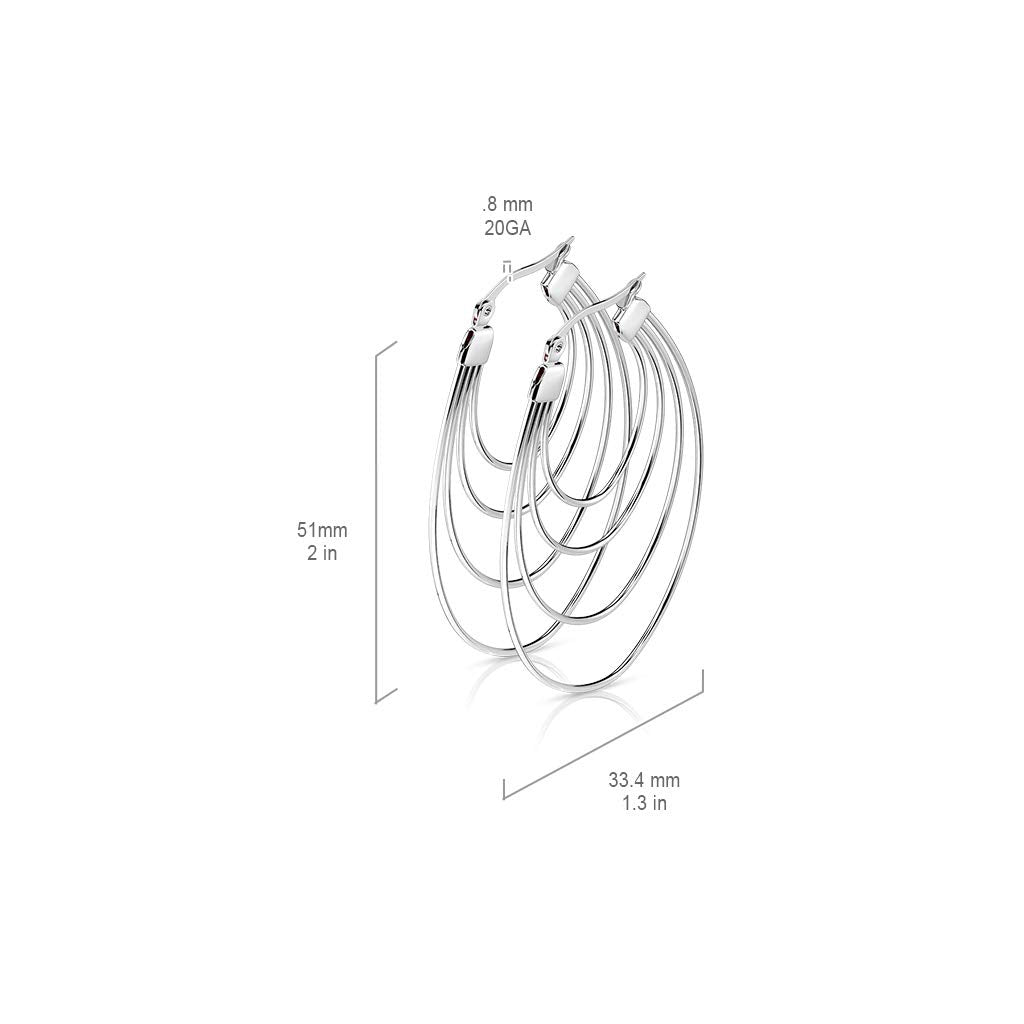 - Pair of Quadruple Layered Ovals 316L Stainless Steel Hoop Earrings
