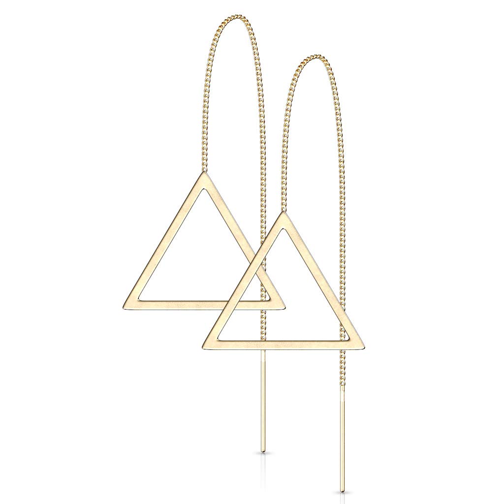 - ✷ Pair of Free Falling Chain with Open Triangle and Bar 316L Stainless Steel Threader Earrings