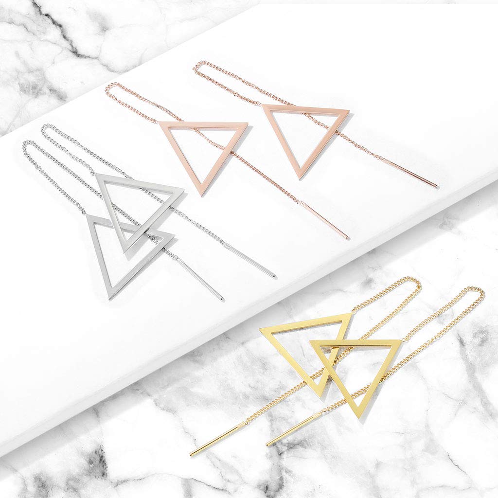 1 Paar Damen Ohrring Durchzieher Anhänger Offenes Dreieck Ohrringe Ohrstecker Chirurgenstahl Silber Gold Roségold