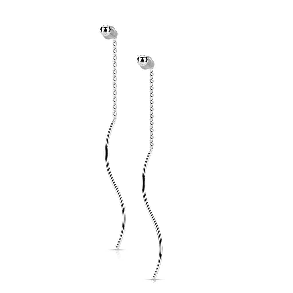 - Pair of 316L Surgical Steel Ball Threader Earrings with Wave Dangle