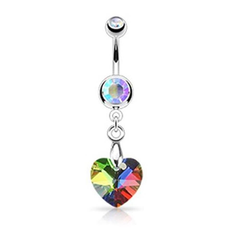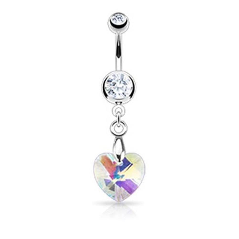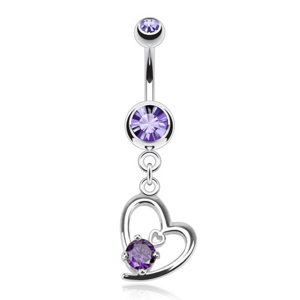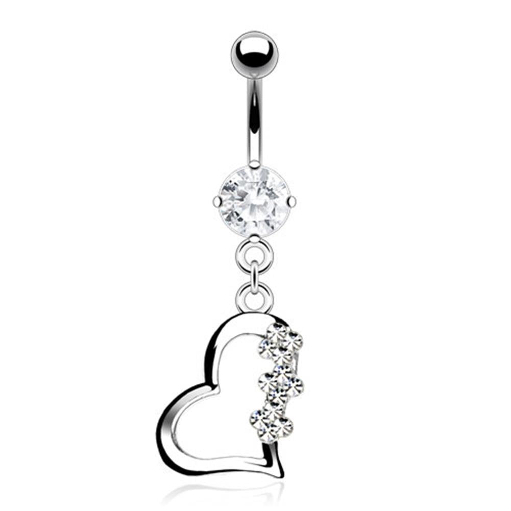 - Hollow Heart with Prong CZ Dangle Navel Ring