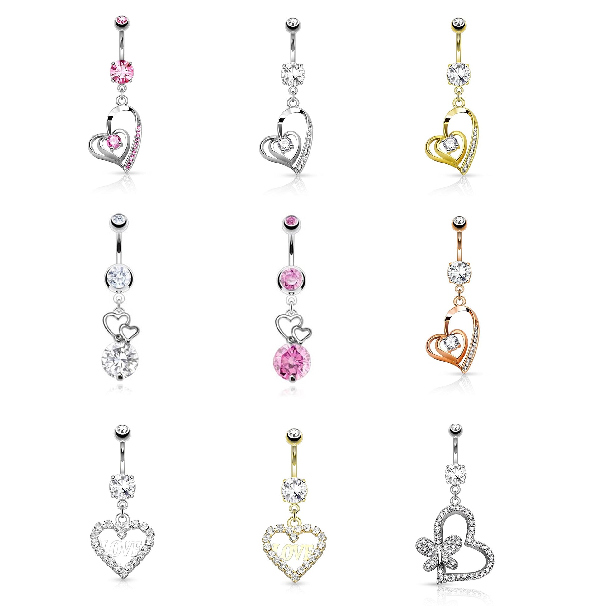 Bauchnabelpiercing 1,6mm 10mm Anhänger Herz Nabelpiercing Edelstahl Chirurgenstahl Bananabell Zirkonia Silber Gold Roségold