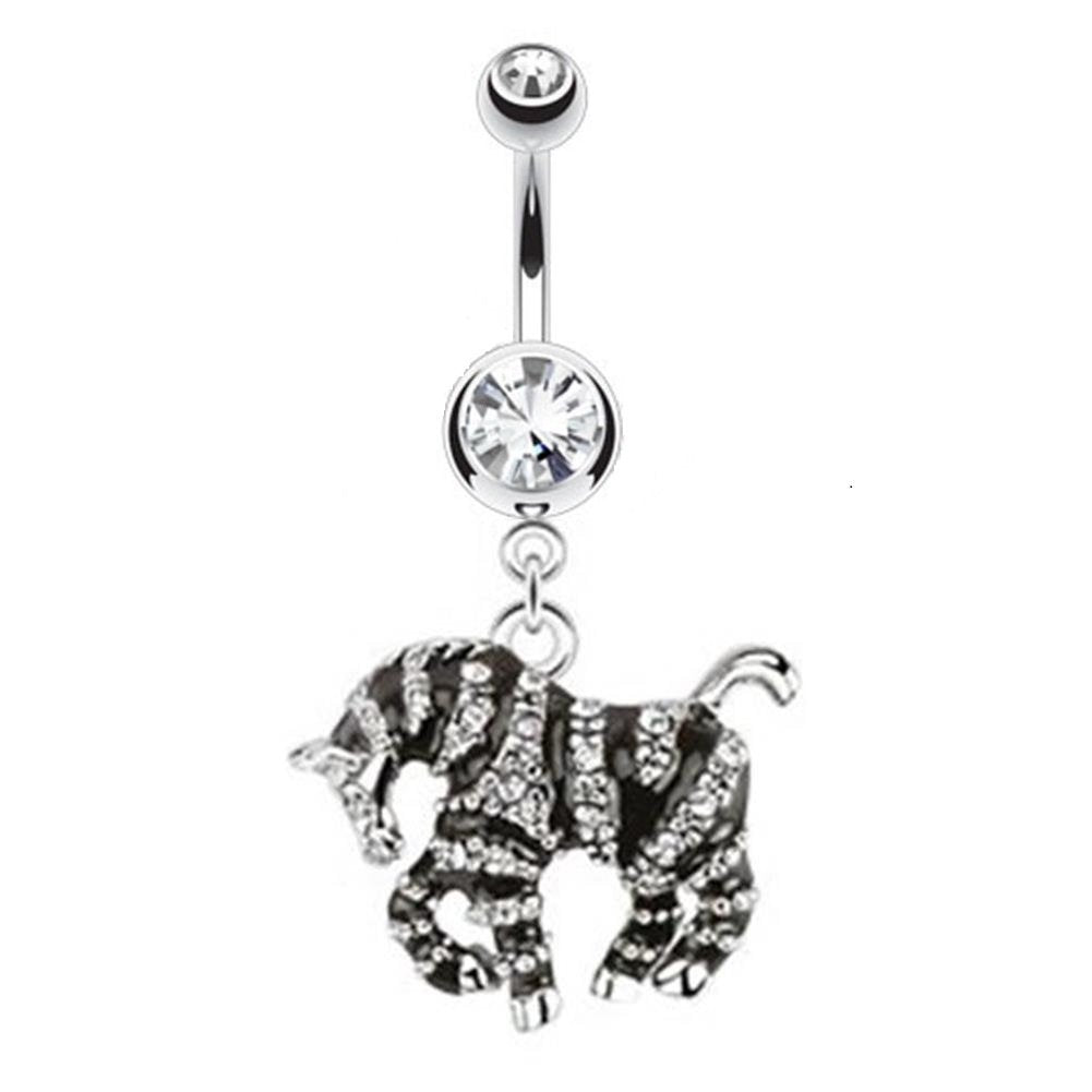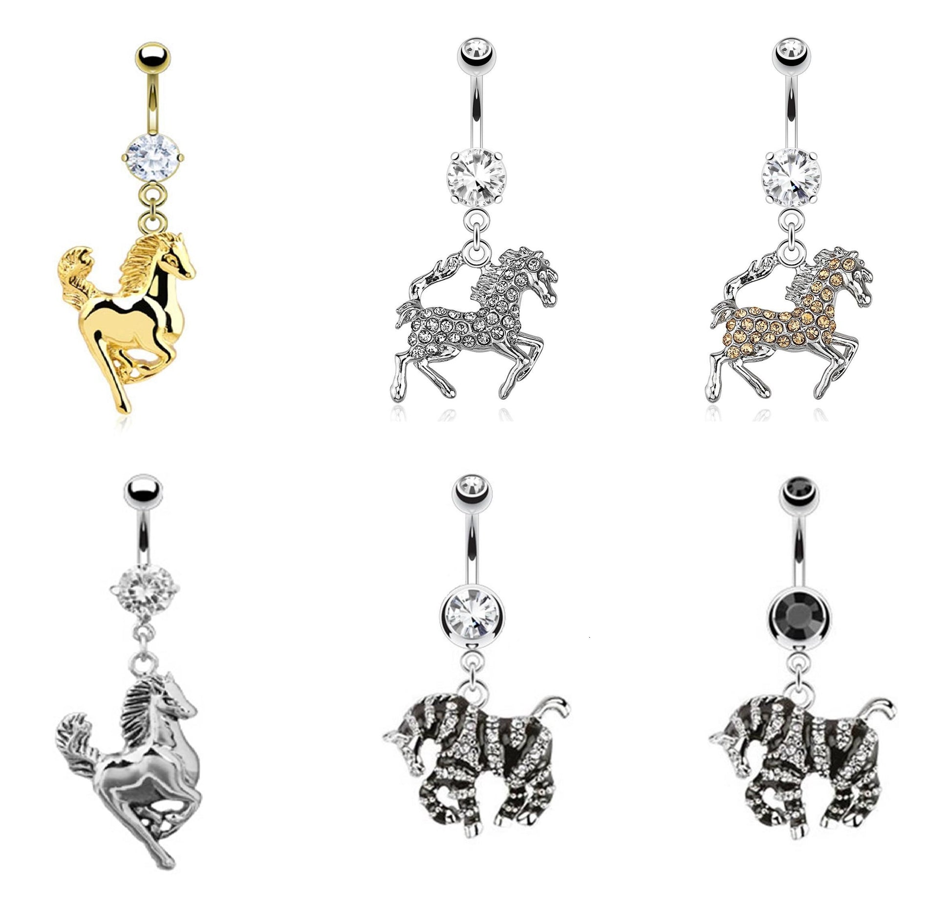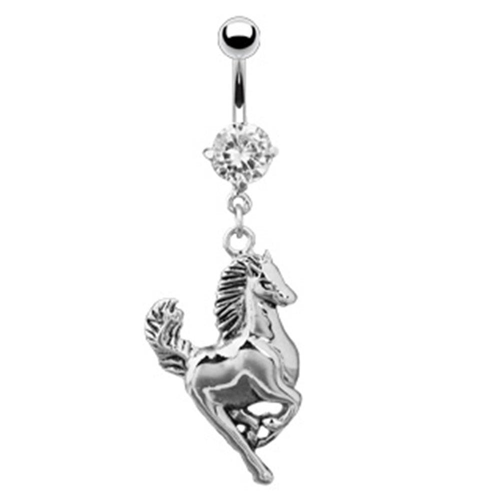 Bauchnabelpiercing 1,6mm 10mm Anhänger Pferd Tier Nabelpiercing Chirurgenstahl Bananabell Zirkonia Gold 14 Karat Silber Clear