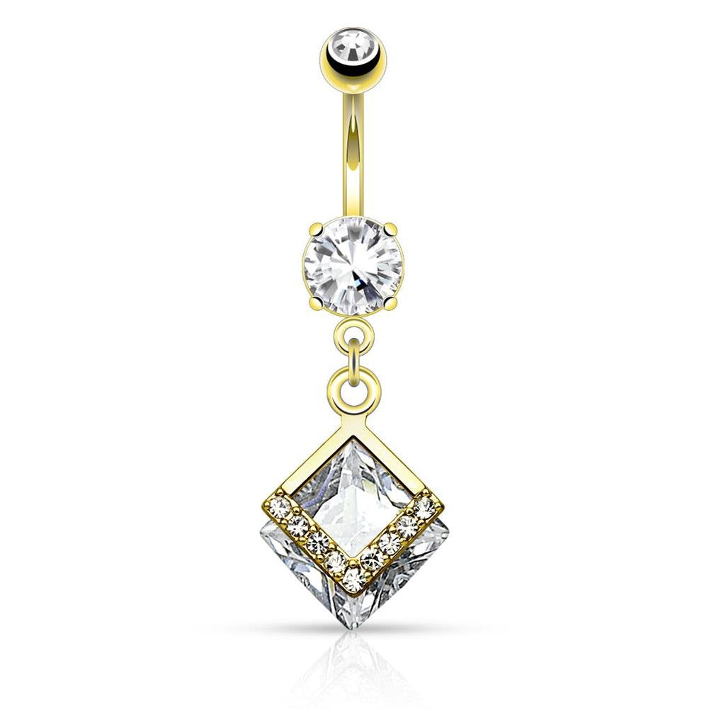 - Mounted Diamond Shaped CZ with Paved CZs Dangle Navel Ring