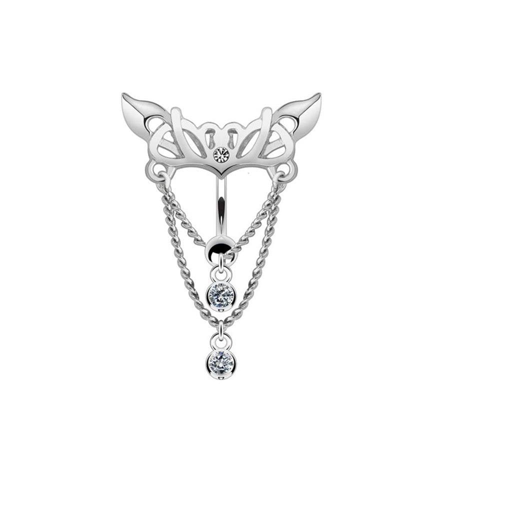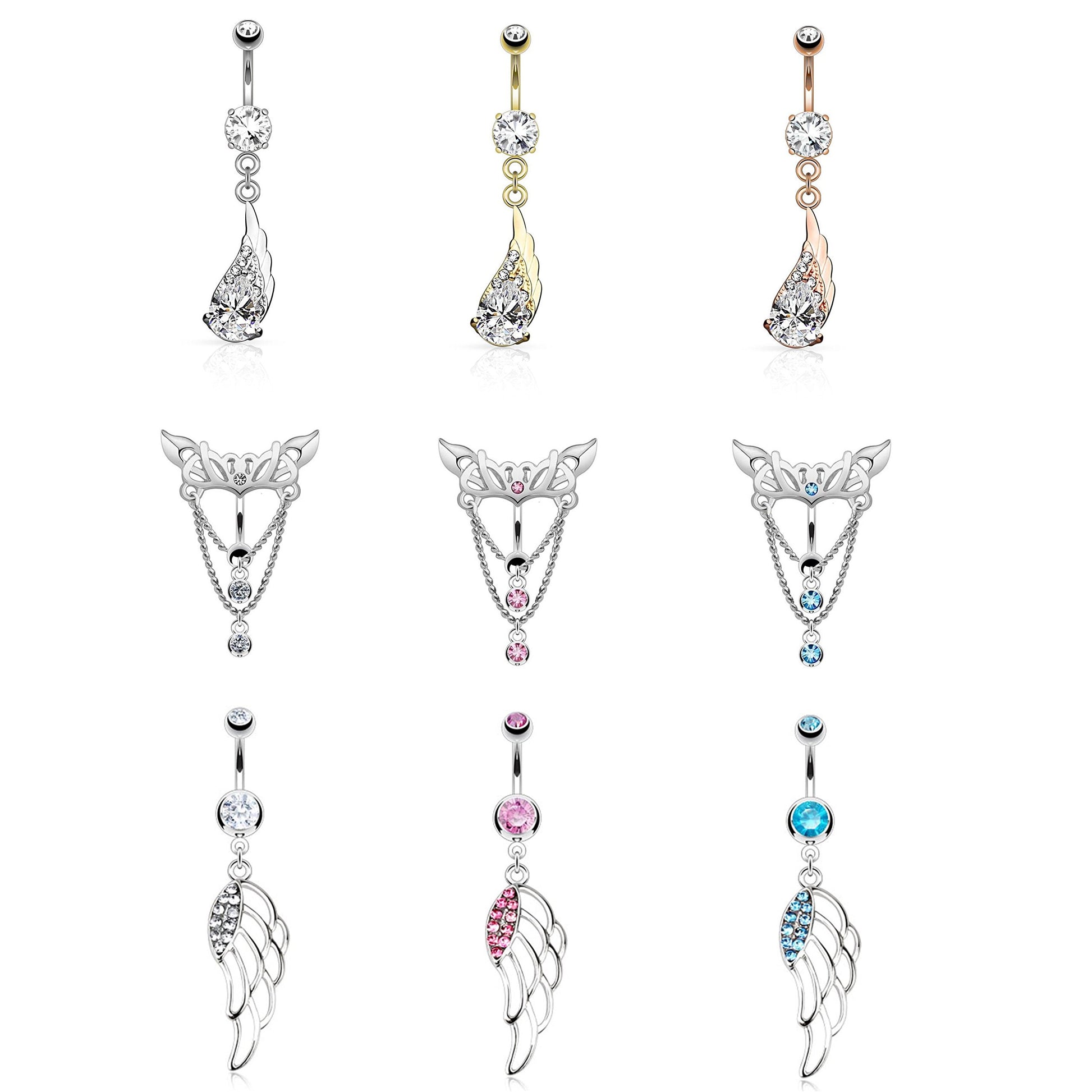 - Hollow Angel Wing with Multi Paved CZ Navel Ring 316L Surgical Steel