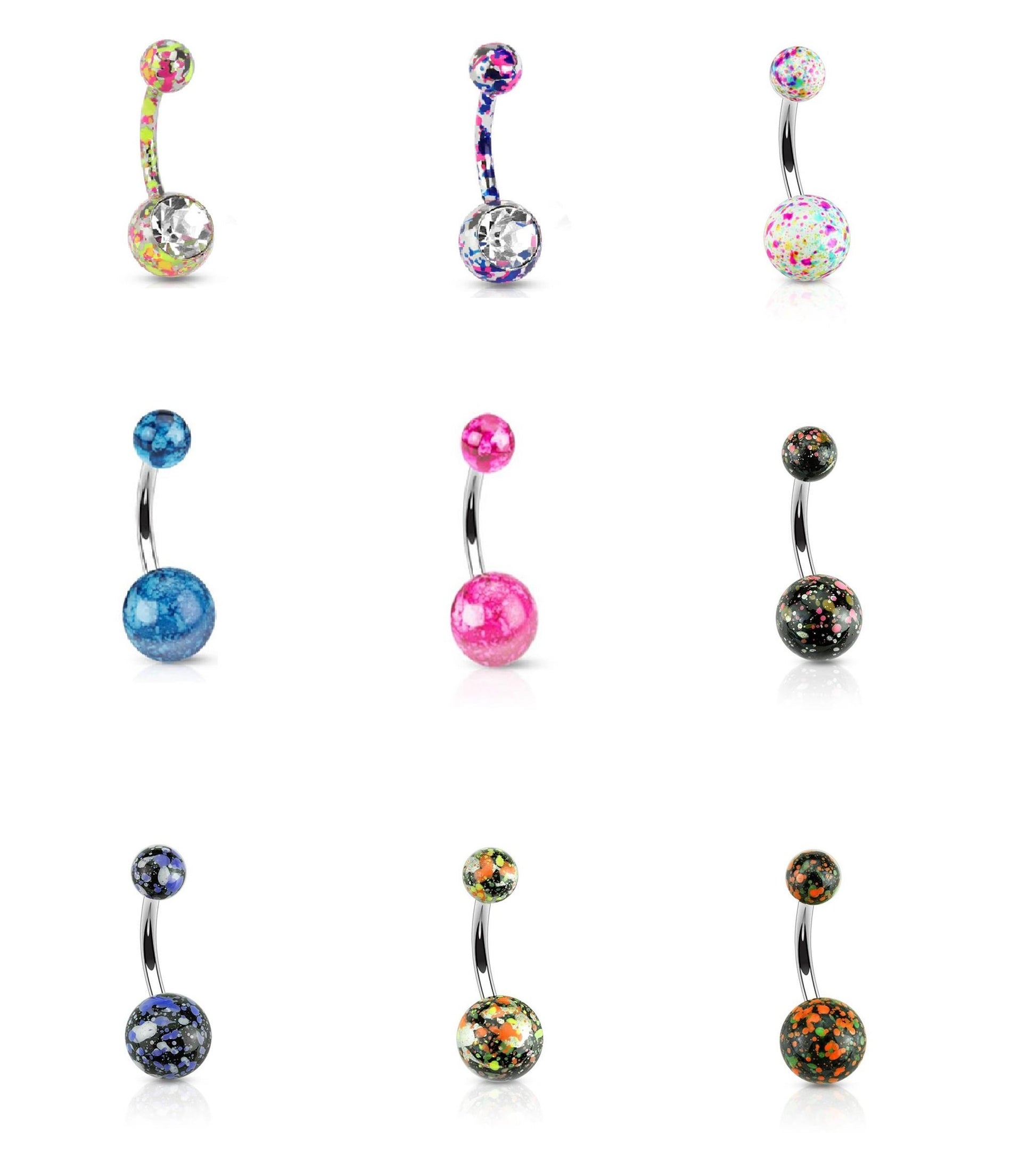 Bauchnabelpiercing 1,6mm 10mm Splatter Spritzer Grafitti Ball Nabelpiercing Edelstahl Chirurgenstahl Bananabell Zirkonia
